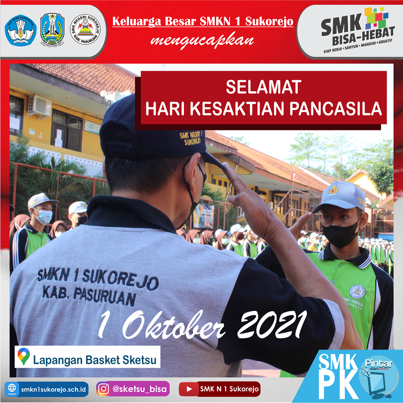 Apel peringatan Hari Kesaktian Pancasila digelar dengan menerapkan protokol kesehatan yang ketat dengan 3M (memakai masker, mencuci tangan, dan menjaga jarak). Setelah kegiatan apel, warga sekolah SMKN 1 Sukorejo, membersihkan lingkungan SMKN 1 Sukorejo sebagai persiapan Adiwiyata Tingkat Provinsi.