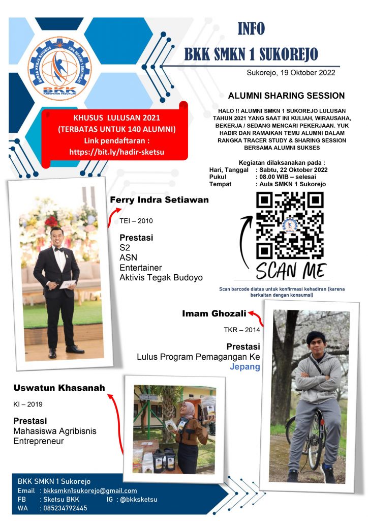 HALO !! ALUMNI SMKN 1 SUKOREJO LULUSAN TAHUN 2021 YANG SAAT INI KULIAH, WIRAUSAHA, BEKERJA / SEDANG MENCARI PEKERJAAN.