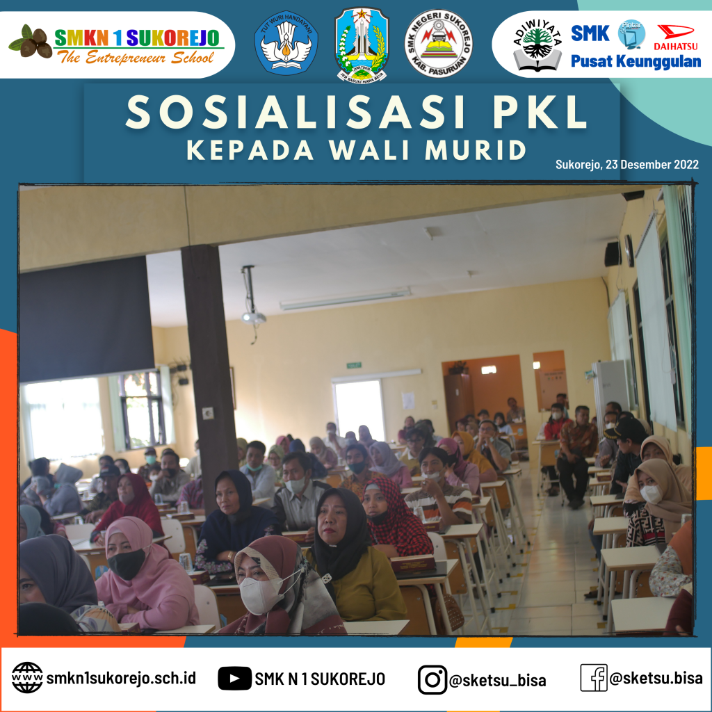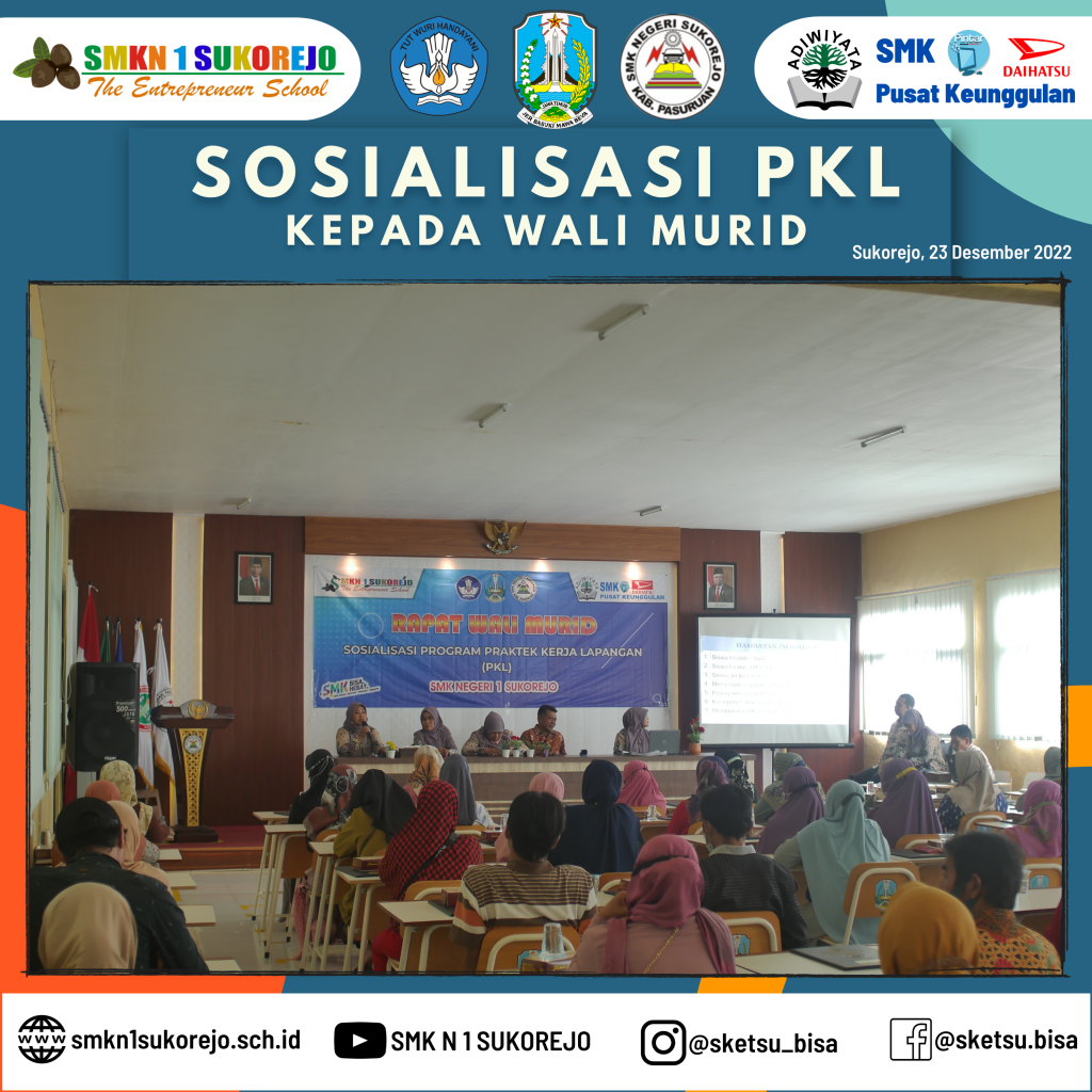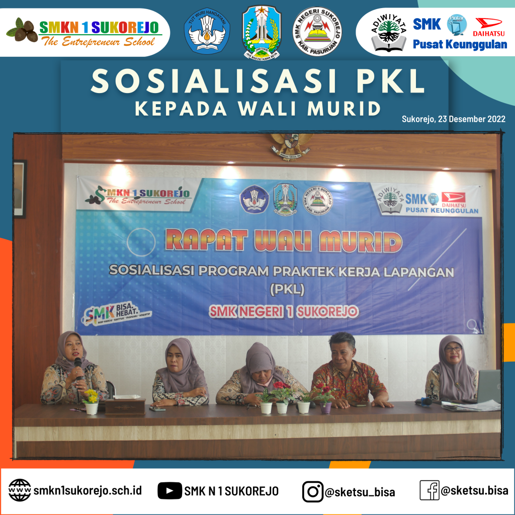 Sukorejo, 23 Desember 2022 telah dilakukan pengambilan Raport semester gasal tahun pelajaran 2021/2022 oleh wali murid. Dalam kesempatan ini pula wali murid dari kelas XI TKR 2, 3 XI TEI 1, XI TAV, XI RPL 2 dan XI KI 1 dikumpulkan dalam rangka Sosialisasi Program Praktik Kerja Lapangan (PKL) Sesuai Agenda yang telah ditetapkan oleh Pokja PKL, PKL akan dilaksanakan selama 6 bulan mulai Januari 2023 yang akan datang.