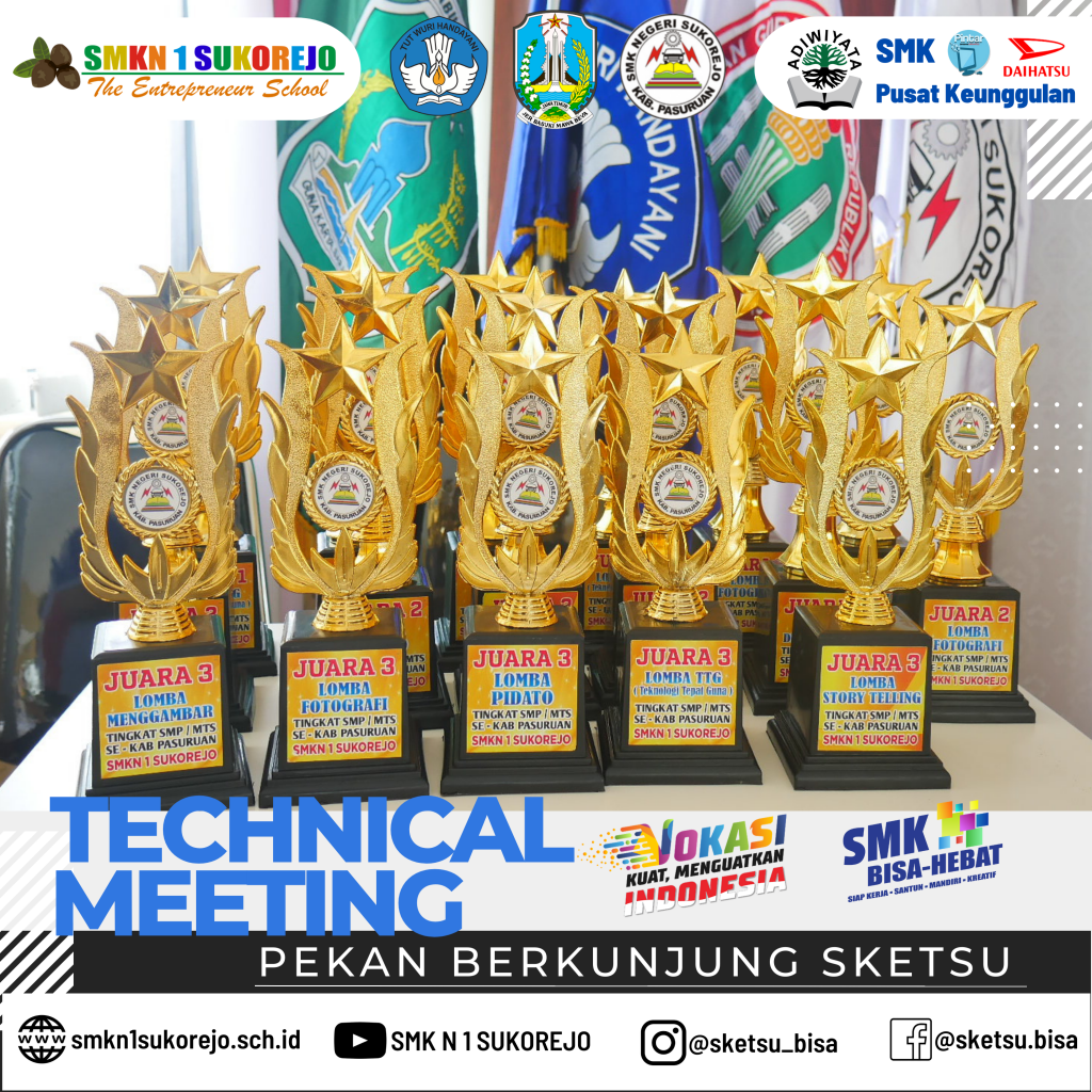 Sukorejo, 16 Februari 2023 telah diadakan Technical Meeting (TM) untuk menyambut kegiatan Pekan Berkunjung Sketsu (PBS).  Pekan Berkunjung Sketsu (PBS) merupakan kegiatan yang diadakan oleh SMK Negeri 1 Sukorejo dengan menghadirkan siswa siswi SMP/Mts sederajat agar turut serta dalam berbagai jenis perlombaan yang akan diselenggarakan. Beberapa jenis perlombaan tersebut diantaranya yaitu :