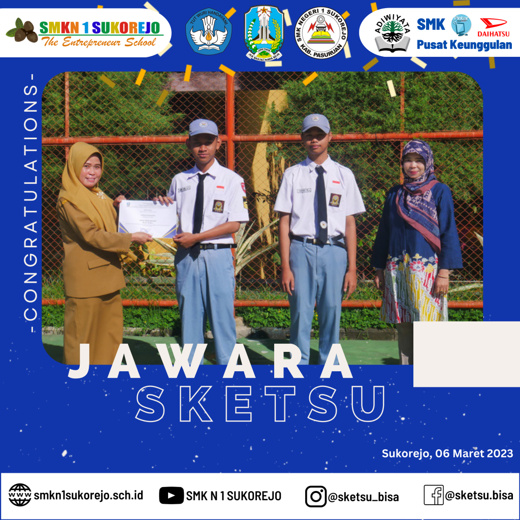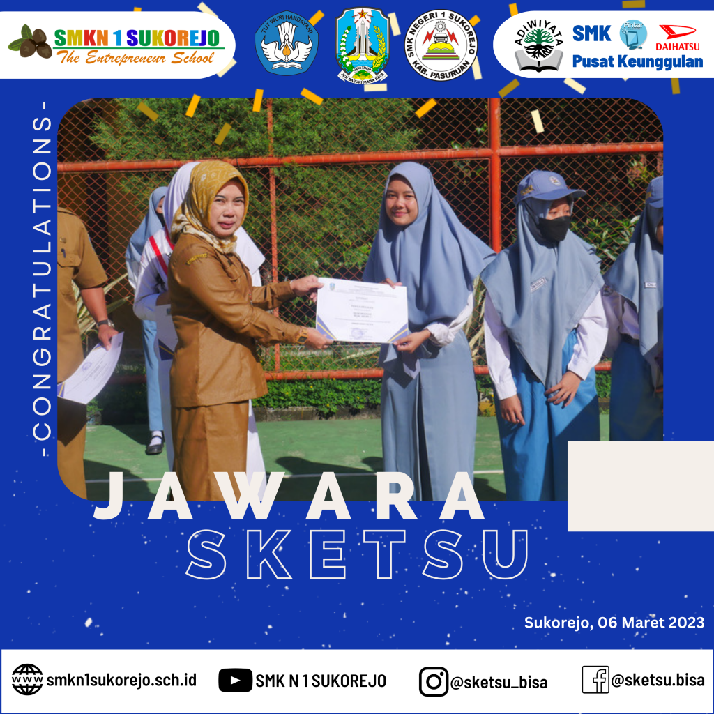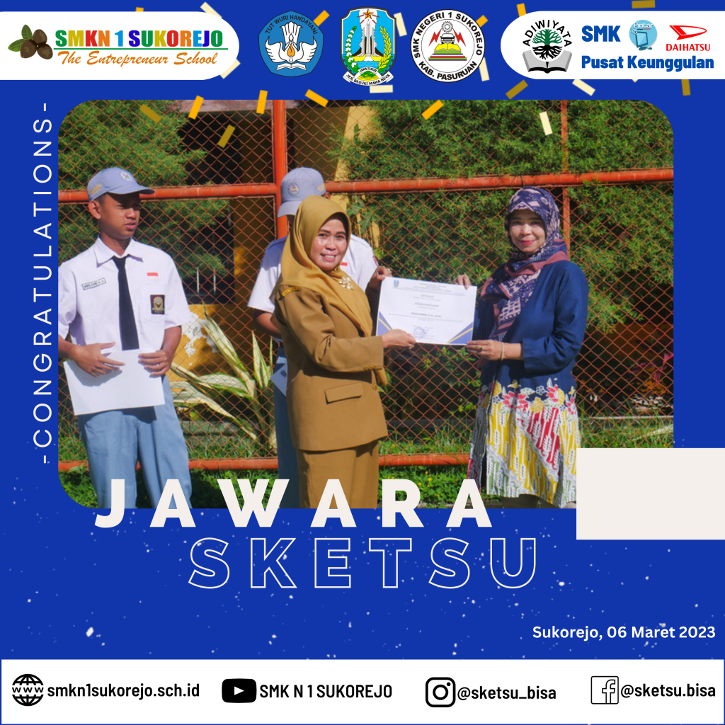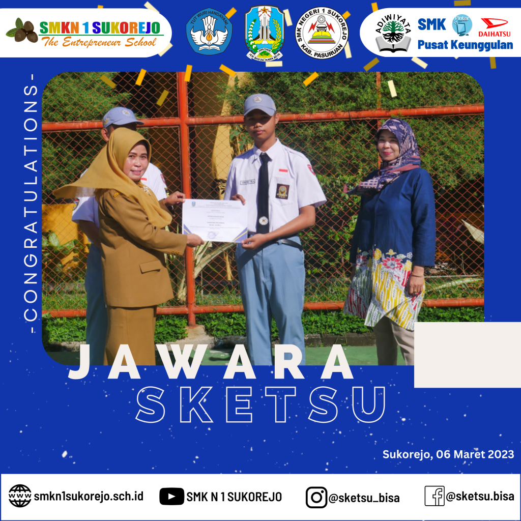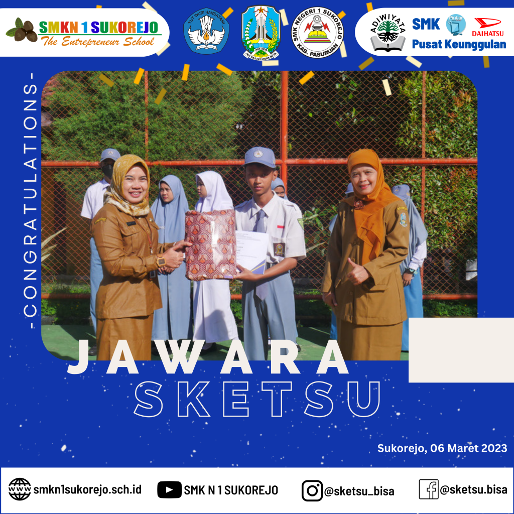 Sukorejo, 06 Maret 2023 Ibu Kepala SMK Negeri 1 Sukorejo Dr. Nisful Laily, S.Pd., M.Pd berkesempatan memberikan piagam penghargaan kepada seluruh Jawara Sketsu yang telah berjuang mengharumkan nama sekolah.
