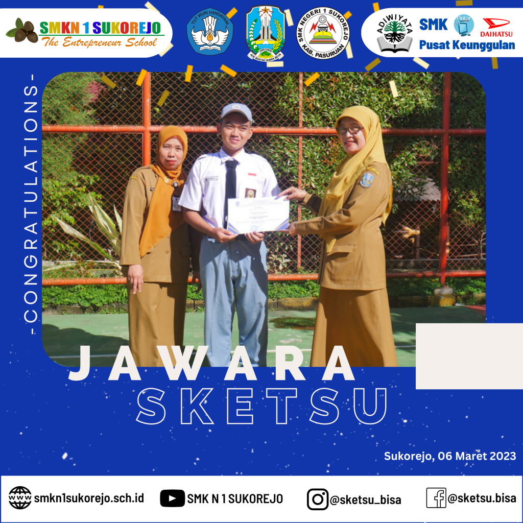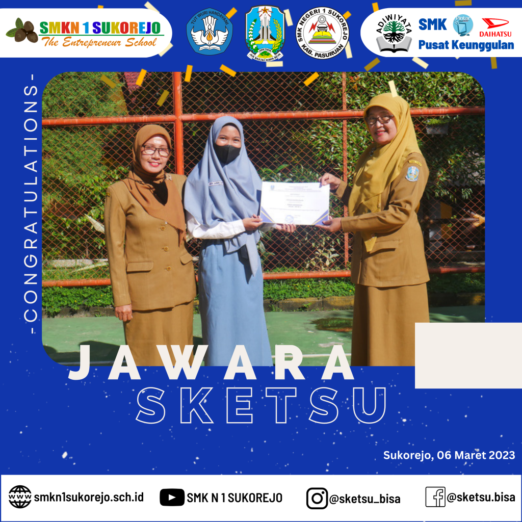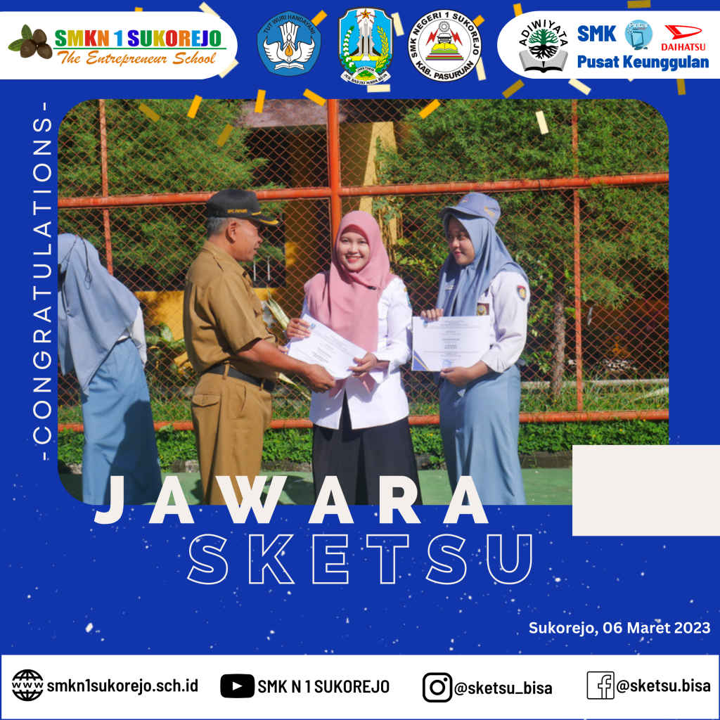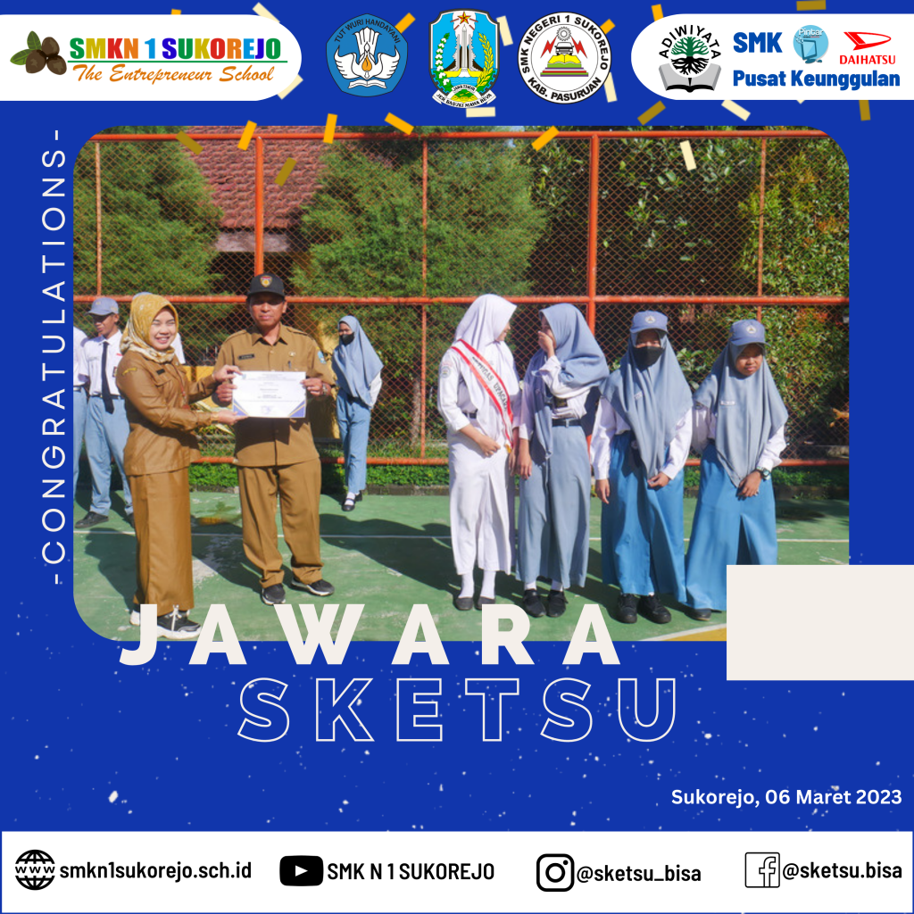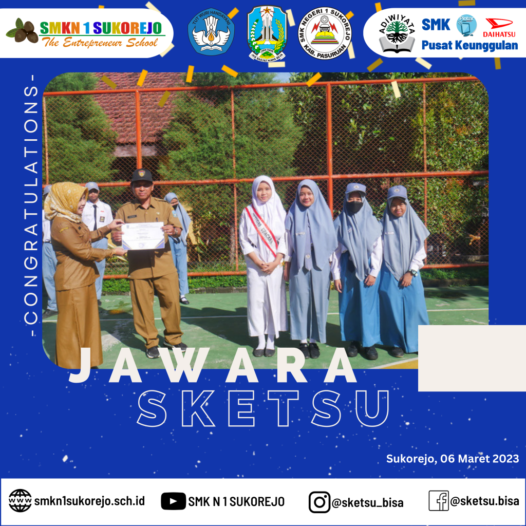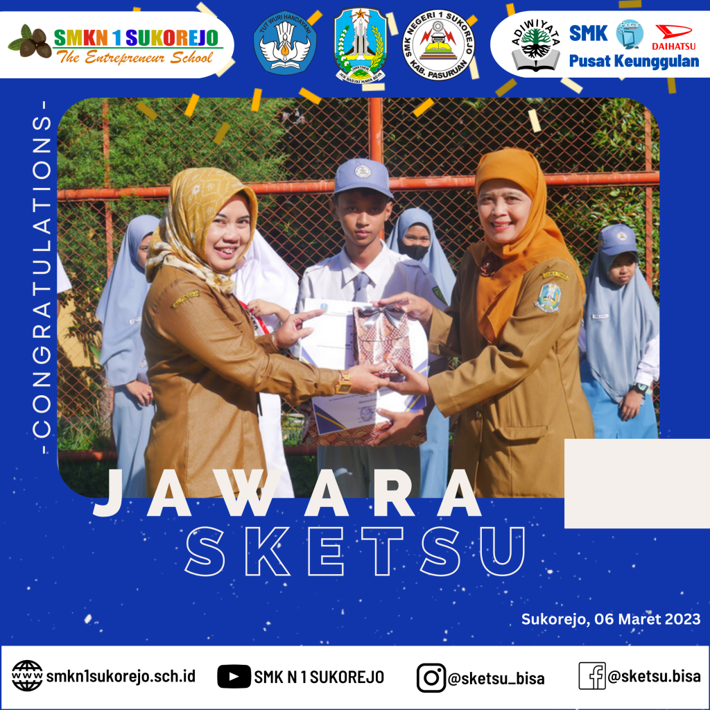 Sukorejo, 06 Maret 2023 Ibu Kepala SMK Negeri 1 Sukorejo Dr. Nisful Laily, S.Pd., M.Pd berkesempatan memberikan piagam penghargaan kepada seluruh Jawara Sketsu yang telah berjuang mengharumkan nama sekolah.