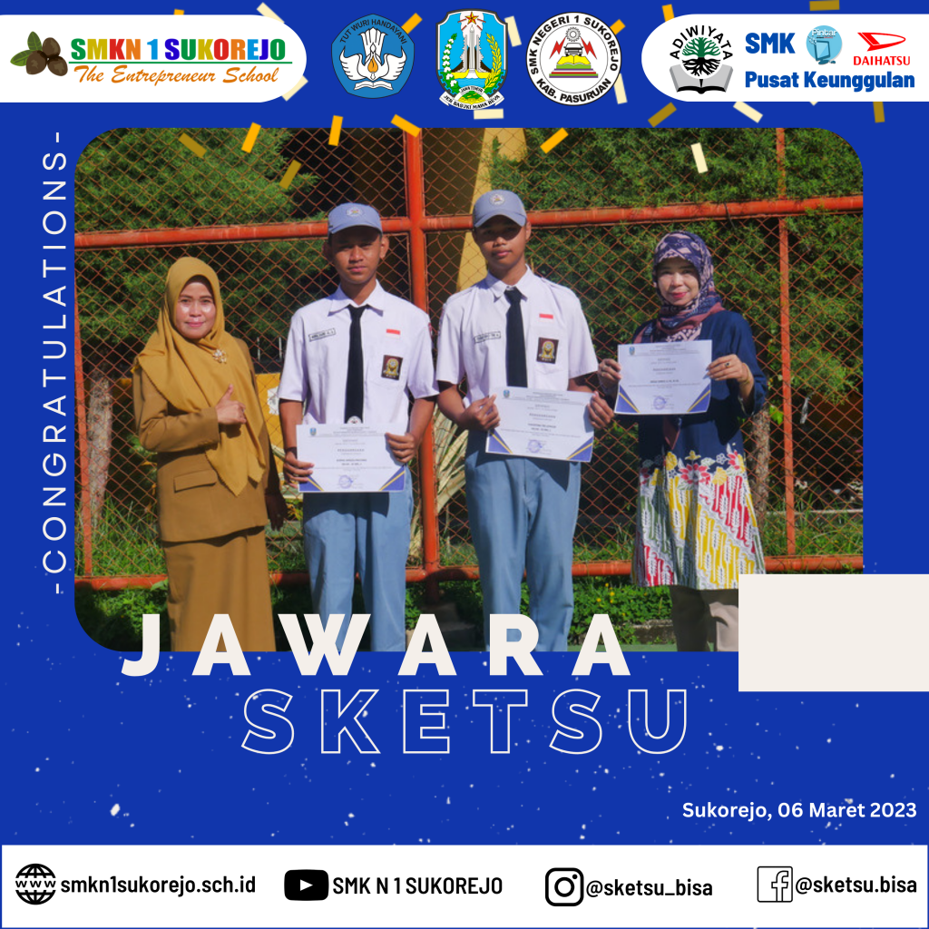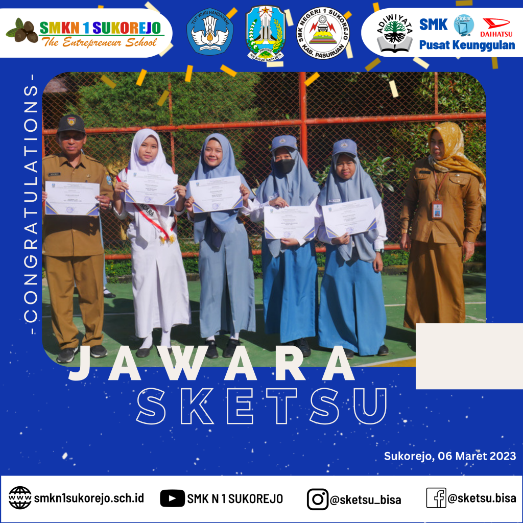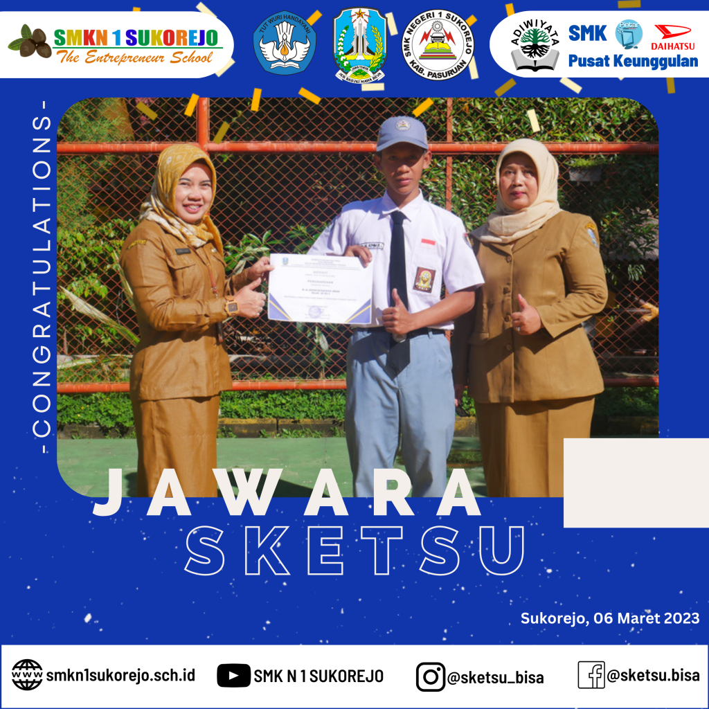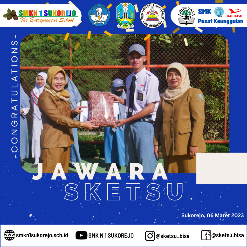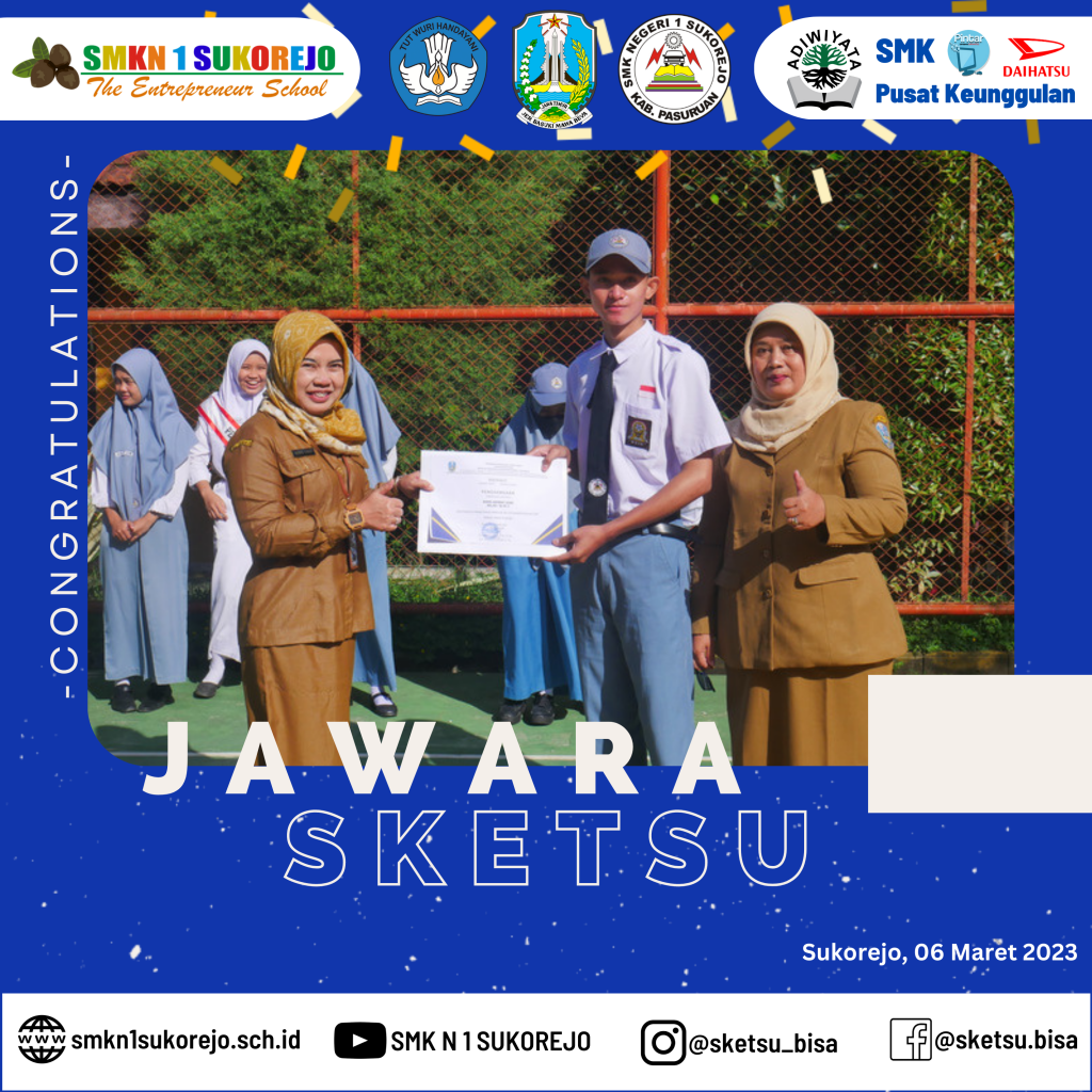 Sukorejo, 06 Maret 2023 Ibu Kepala SMK Negeri 1 Sukorejo Dr. Nisful Laily, S.Pd., M.Pd berkesempatan memberikan piagam penghargaan kepada seluruh Jawara Sketsu yang telah berjuang mengharumkan nama sekolah.
