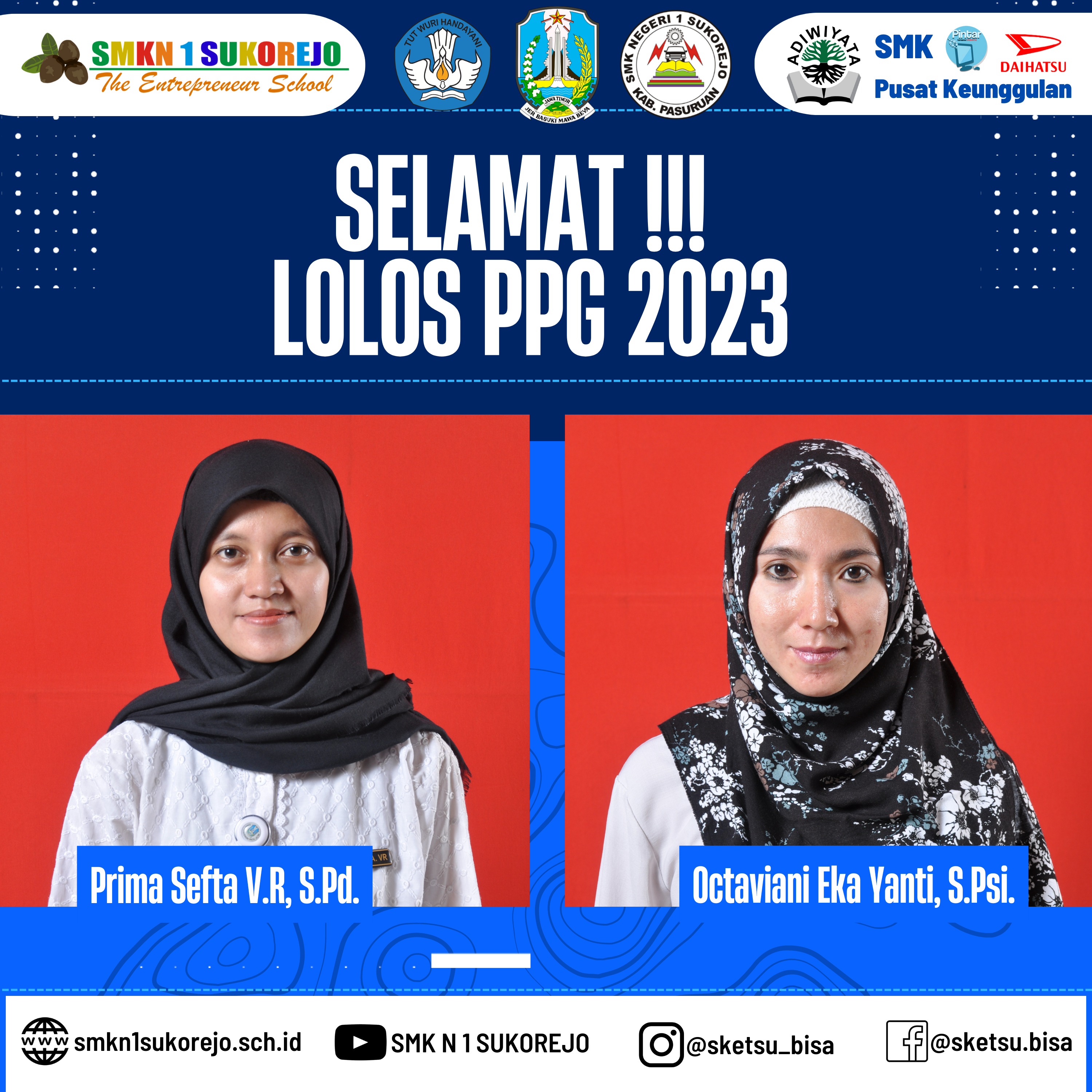 Setelah melakukan serangkaian kegiatan dan ujian, 2 guru SMK Negeri 1 Sukorejo dinyatakan Lolos dalam PPG 2023. Selamat & Semoga Sukses !