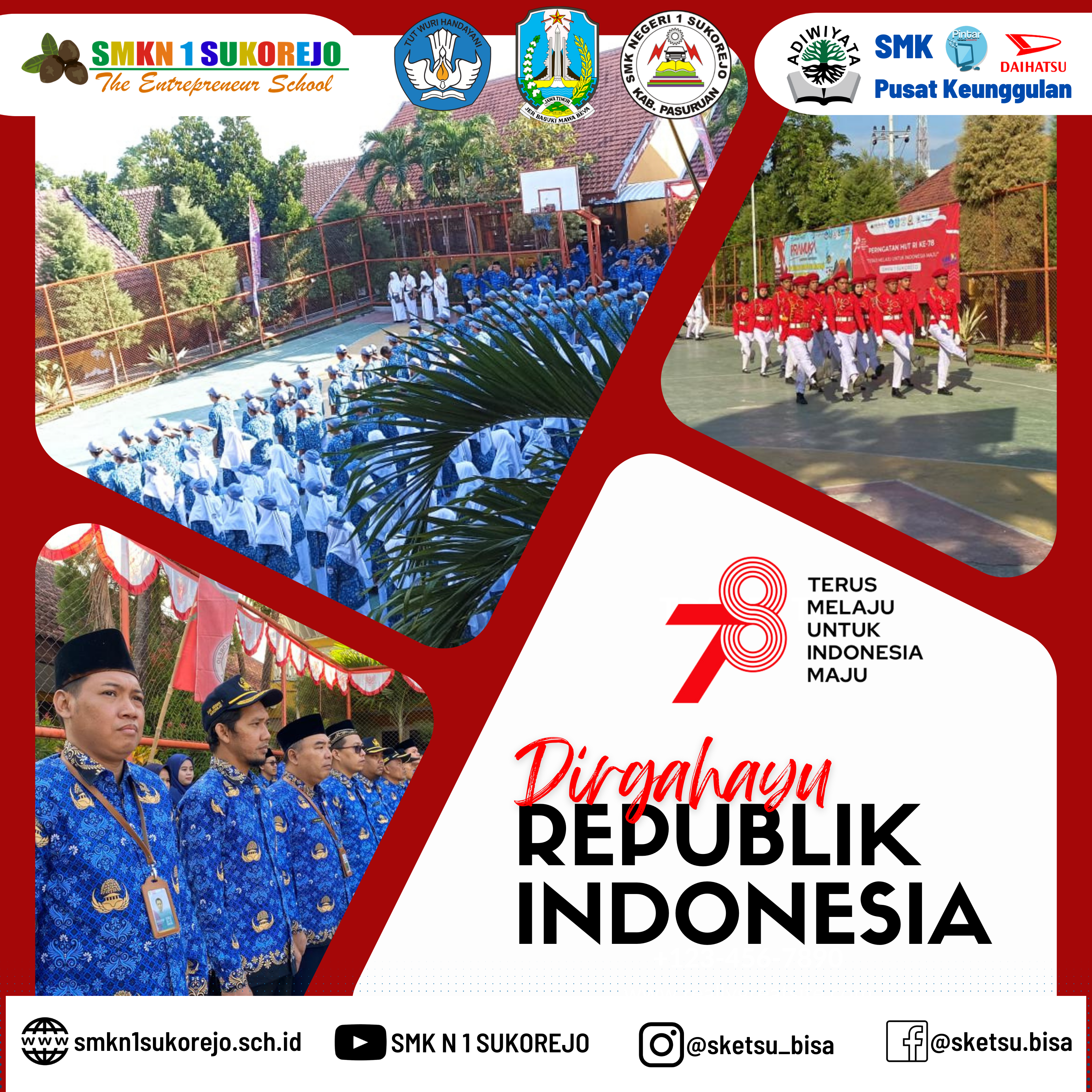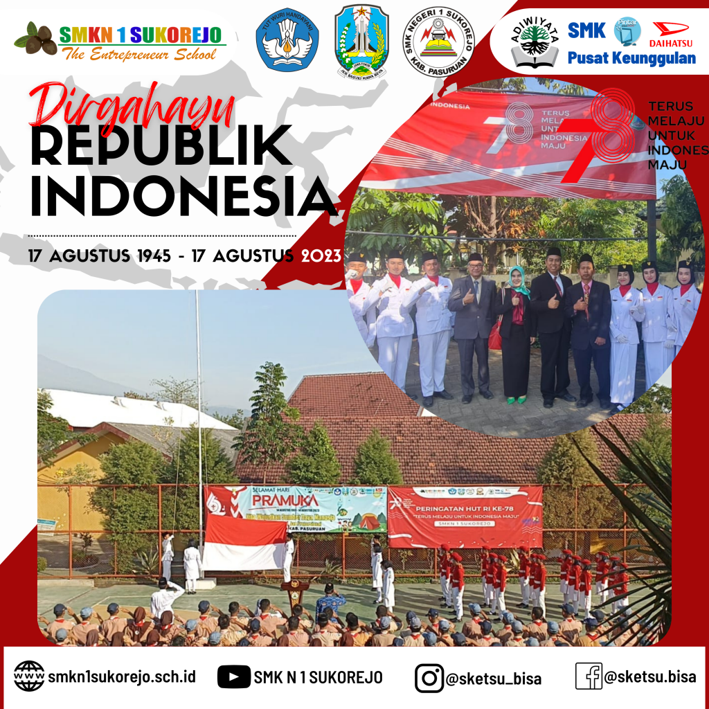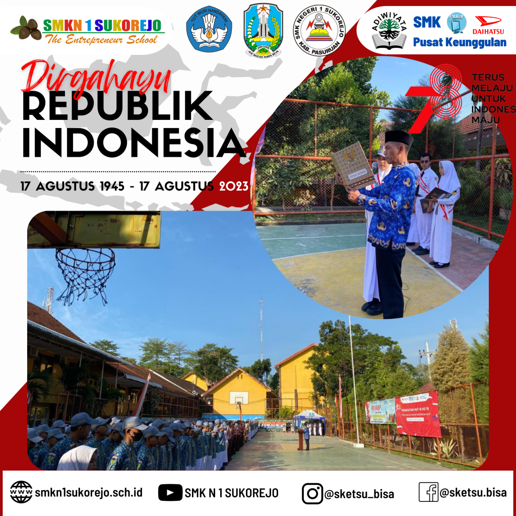 Sukorejo, 17 Agustus 2023 telah dilaksanakan upacara peringatan Hari Kemerdekaan RI dengan penuh Khikmat. Bapak Riduwan selaku pembina upacara menyampaikan sejarah kemerdekaan Republik Indonesia “Indonesia yakin bisa berjalan dengan kaki dan tangannya sendiri” ucapnya.