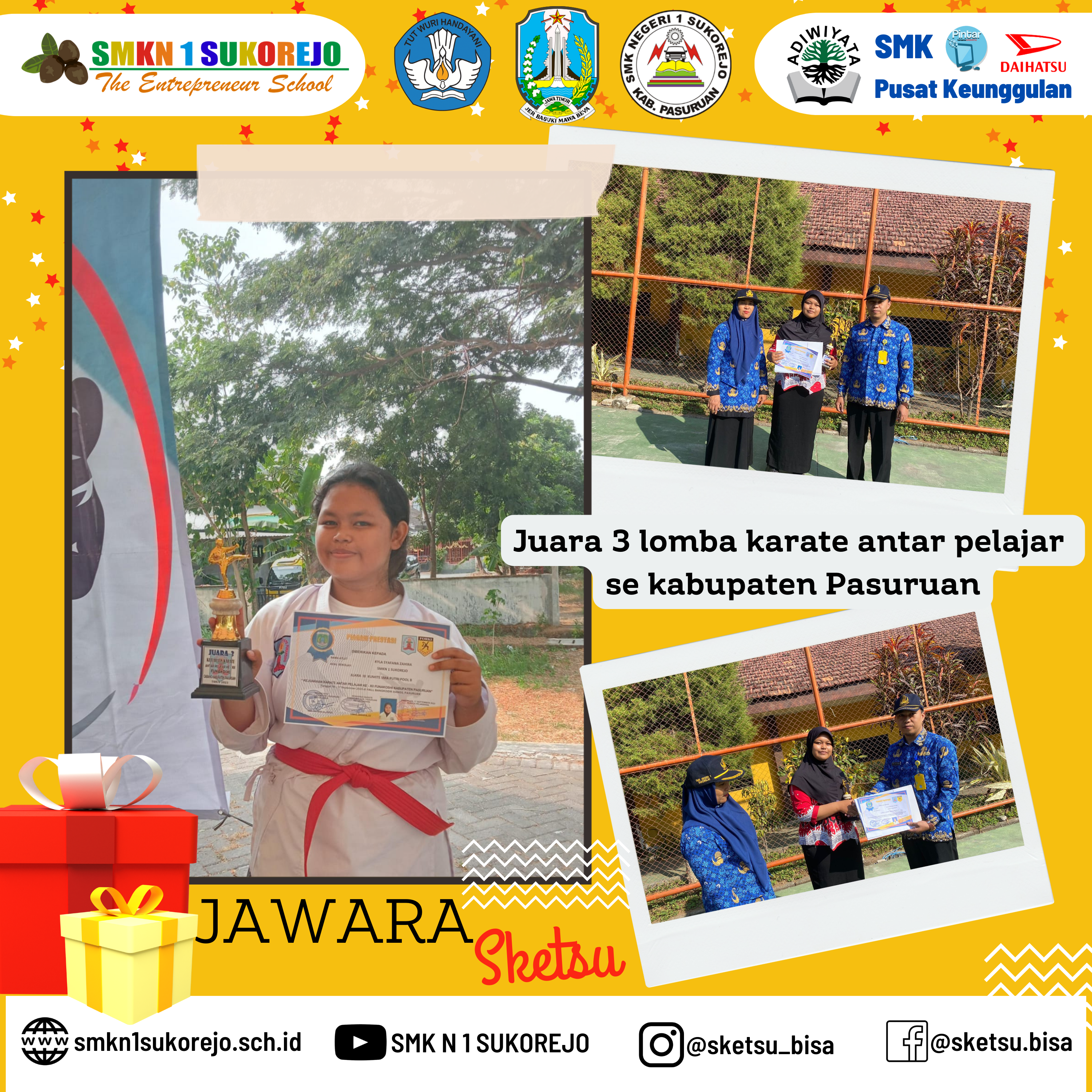 SELAMAT !!! SISWI SMKN 1 SUKOREJO BERHASIL MERAIH JUARA 3 DALAM PERLOMBAAN KARATE ANTAR PELAJAR SE KABUPATEN PASURUAN Agenda Sekolah Informasi Sekolah Kegiatan Sekolah 18 September 202318 September 2023 adminLeave a Comment on SELAMAT !!! SISWI SMKN 1 SUKOREJO BERHASIL MERAIH JUARA 3 DALAM PERLOMBAAN KARATE ANTAR PELAJAR SE KABUPATEN PASURUAN [SKETSU BERAKSI]Selamat untuk ananda Kaila (X TEI 3) telah meraih juara 3 dalam perlombaan Karate antar pelajar se Kabupaten Pasuruan. Terus tingkatkan prestasimu, jangan mudah puas & pantang menyerah !!Ayo BERAKSI bersama SKETSU !#smkn1sukorejo#sketsu#smkbisa#smkhebat#sketsubisahebat#sketsuberaksi#berakhlak#berkarya#berprestasi