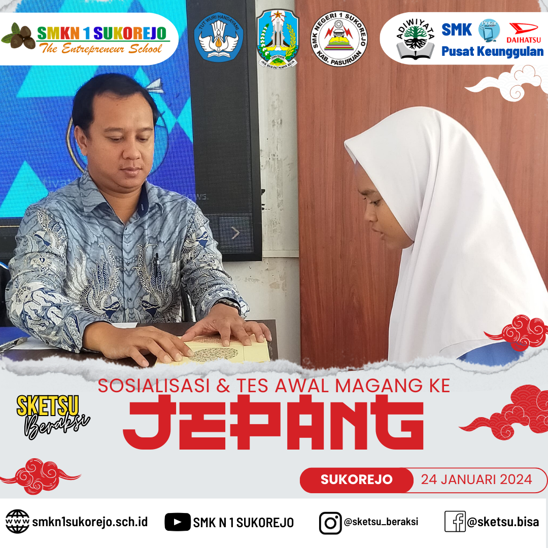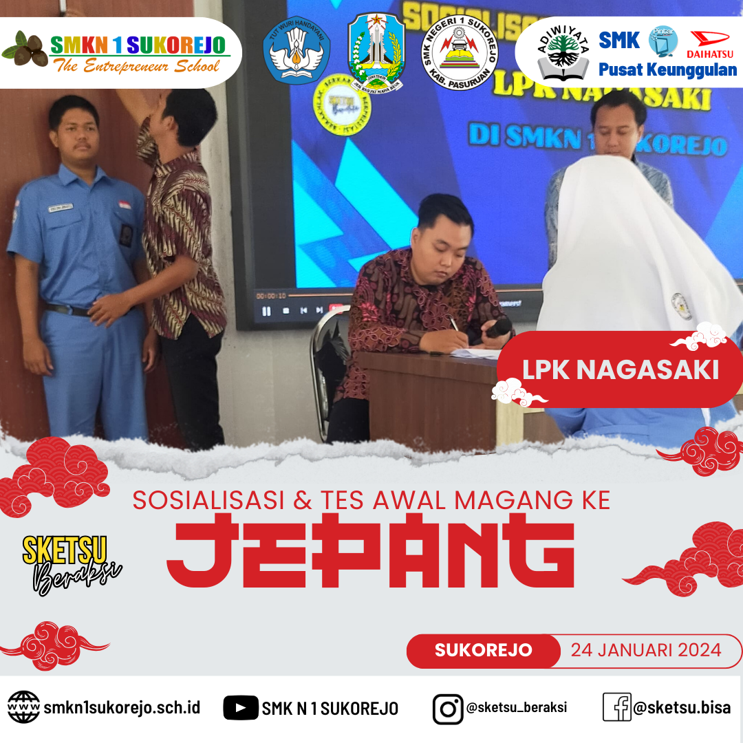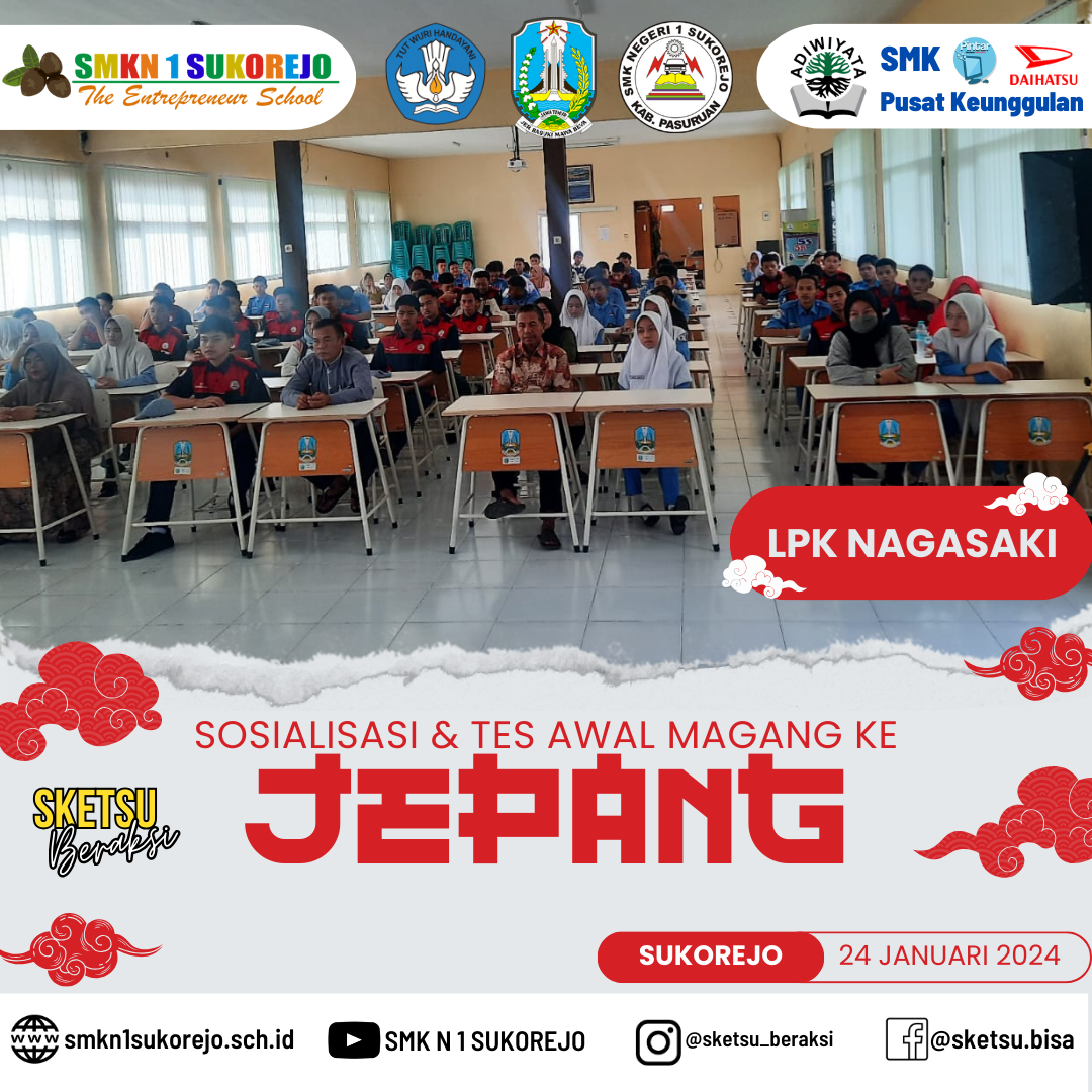 Semoga dalam tes tahap awal ini peserta didik SMK Negeri 1 Sukorejo bisa lolos untuk mengikuti seleksi tahap berikutnya dan menyusul kakak kelasnya yang saat ini juga sedang magang di Jepang