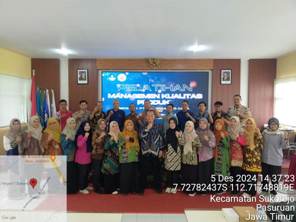 Sukorejo, 6 Desember 2024 – SMKN 1 Sukorejo sukses menyelenggarakan Pelatihan Manajemen Kualitas Produk yang berlangsung selama dua hari, yakni pada tanggal 4 hingga 5 Desember 2024, bertempat di Ruang Aula SMKN 1 Sukorejo.