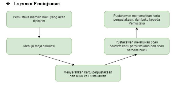 - Wajib membawa kartu pelajar untuk proses absen kunjungan, peminjaman, perpanjangan, dan pengembalian.